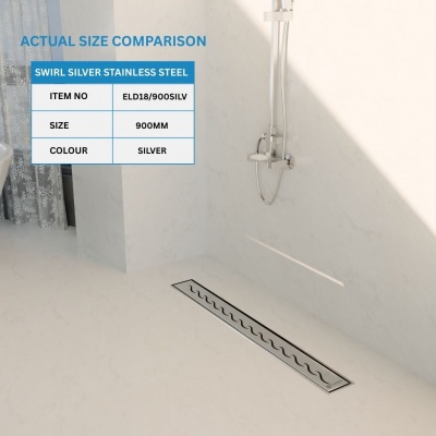 900 Swirl Silver Stainless Steel shower wet room floor drainProduct Code: ELD18-900S