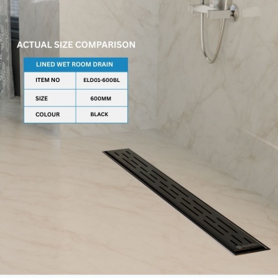 600mm Lined WET ROOM DRAIN BLACK ELD01-600BLProduct Code: ELD01-600BL