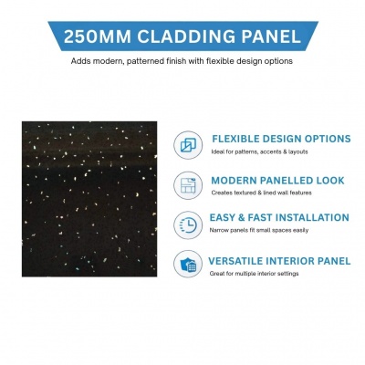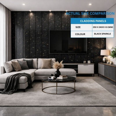 BLACK SPARKLE 250mm x 2600mm PVC Wall/Ceiling Panel 8mmProduct Code: 250MM-BLACKSPARKLE