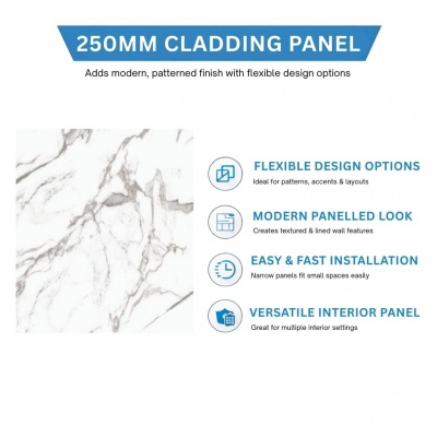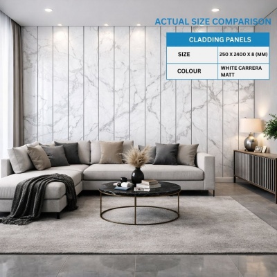 CARRERA MATT WHITE GREY VEIN 250mm x 2600mm PVC Wall/Ceiling Panel 8mmProduct Code: 250MM-CARRERAMATTWHITE