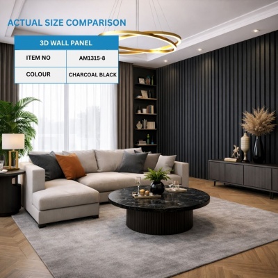 Charcoal Black 3D Slat Wall Cladding Panel WaterproofProduct Code: AM1315-8