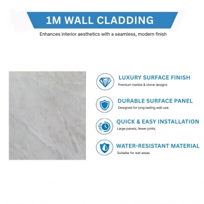 Duraplast UK | Light Grey Marble Gloss 10mm Waterproof Bathroom PVC Cladding Panel 1m