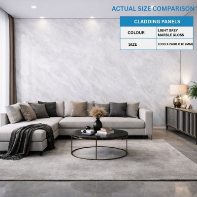 Duraplast UK | Light Grey Marble Gloss 10mm Waterproof Bathroom PVC Cladding Panel 1mProduct Code: DURA-LIGHTGREMARBLEGLOSS