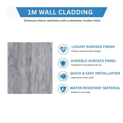 Duraplast UK Light Graphite Matt 10mm Waterproof Bathroom PVC Cladding Panel |1mProduct Code: DURA-LIGHTGRAPHITEMATT1M