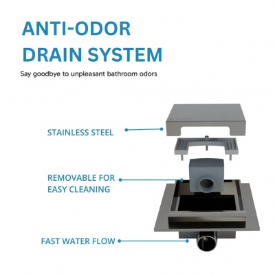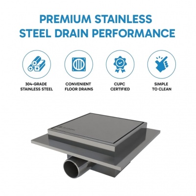 Eludora 150 x 150 2in1 Silver Stainless Steel shower wet room floor drain