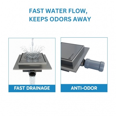 Eludora 200 x 200 2in1 Silver Stainless Steel shower wet room floor drain