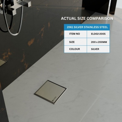 Eludora 200 x 200 2in1 Silver Stainless Steel shower wet room floor drainProduct Code: ELD02-200S