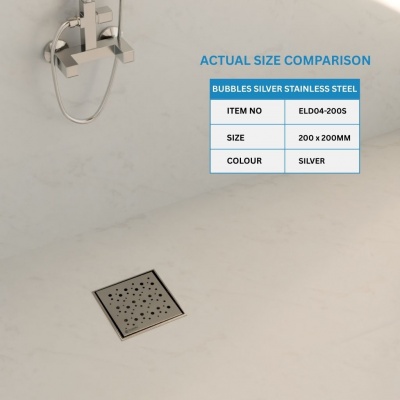 Eludora 200 x 200 Bubbles Silver Stainless Steel shower wet room floor drainProduct Code: ELD04-200S