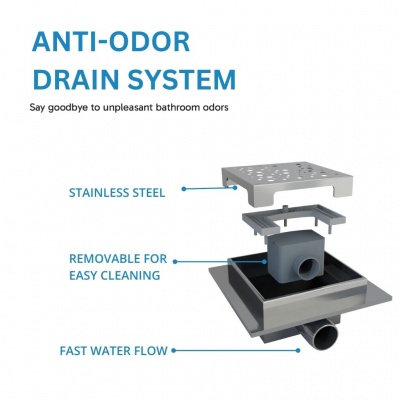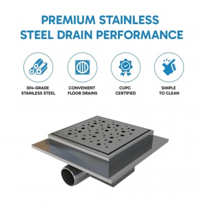 Eludora 200 x 200 Bubbles Silver Stainless Steel shower wet room floor drain