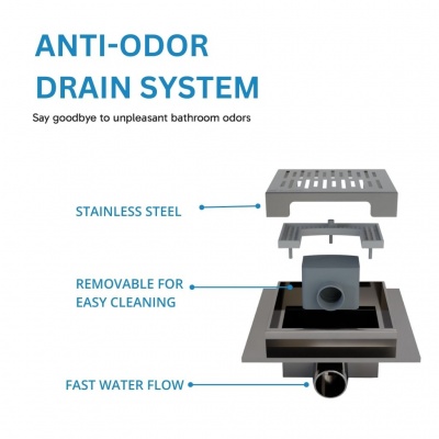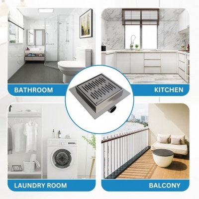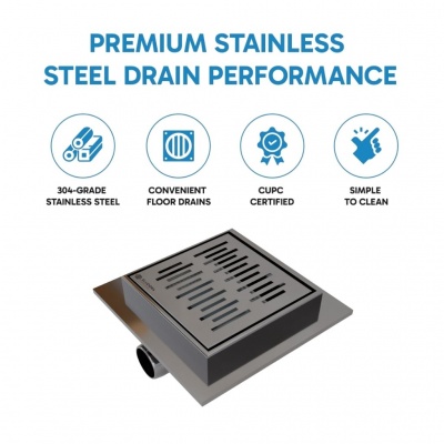 Eludora 200 x 200 Lined Silver Stainless Steel shower wet room floor drain