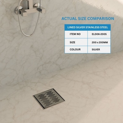Eludora 200 x 200 Lined Silver Stainless Steel shower wet room floor drainProduct Code: ELD06-200S