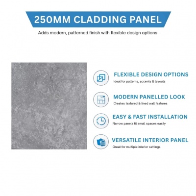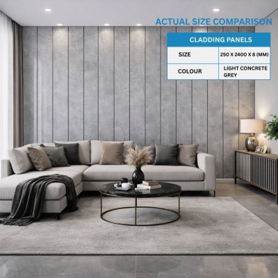 LIGHT CONCRETE GREY 250mm x 2600mm PVC Wall/Ceiling Panel