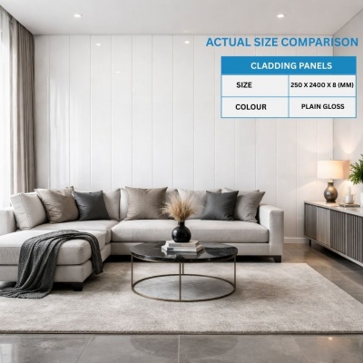 PLAIN GLOSS WHITE 250mm x 2600mm PVC Wall/Ceiling Panel 8mmProduct Code: 250MM-GLOSSWHITE