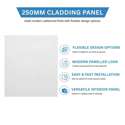 PLAIN GLOSS WHITE 250mm x 2600mm PVC Wall/Ceiling Panel 8mm