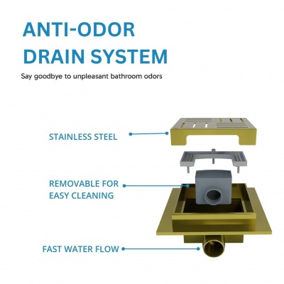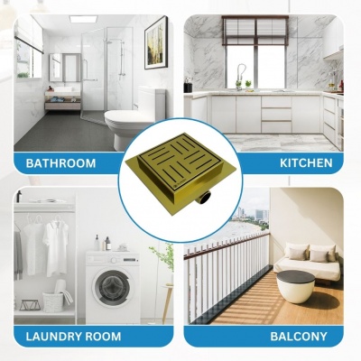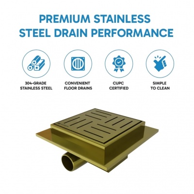 S01 150 X 150 TETRIS BRUSHED BRASS Stainless Steel shower wet room floor drain