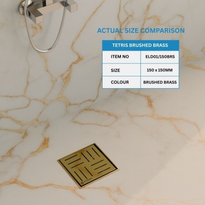S01 150 X 150 TETRIS BRUSHED BRASS Stainless Steel shower wet room floor drainProduct Code: ELD01-150BRS
