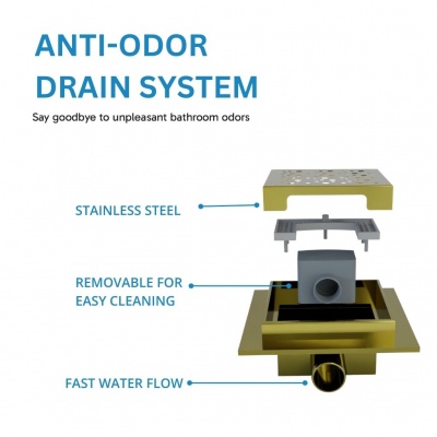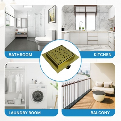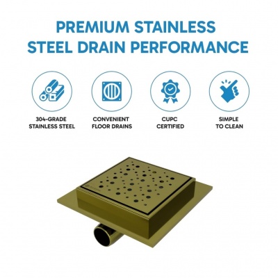 S04 150 X 150 Bubbles BRUSHED BRASS Stainless Steel shower wet room floor drain