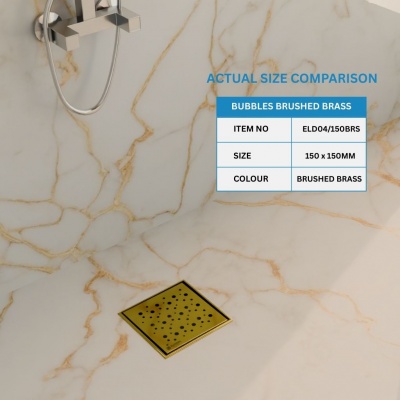 S04 150 X 150 Bubbles BRUSHED BRASS Stainless Steel shower wet room floor drainProduct Code: ELD04-150BRS