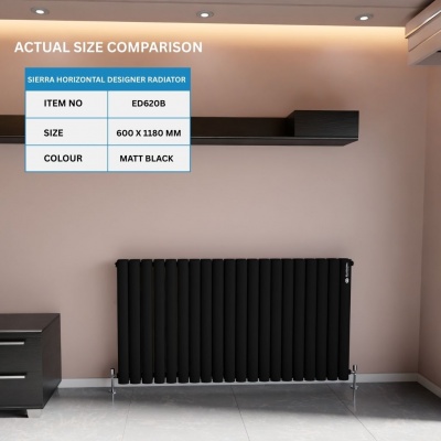 Sierra Horizonal Designer Radiator Double 600 X 1180 (mm) Matte BlackProduct Code: ED620B