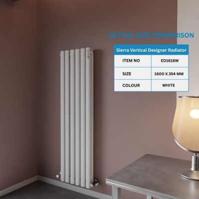 Sierra Vertical Designer Radiator Double 1600 X 354 (mm) WhiteProduct Code: ED1616W