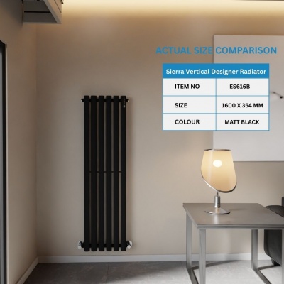Sierra Vertical Designer Radiator Single 1600 X 354 (mm) Matte BlackProduct Code: ES616B