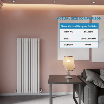 Sierra Vertical Designer Radiator Single 1600 X 590 (mm) WhiteProduct Code: ES1016W