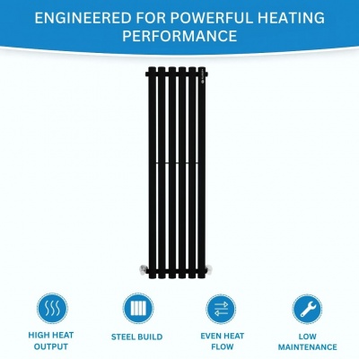 Sierra Vertical Designer Radiator Single 1800 X 354 (mm) Matte Black