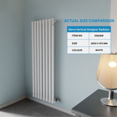 Sierra Vertical Designer Radiator Single 1800 X 472 (mm) WhiteProduct Code: ES188W