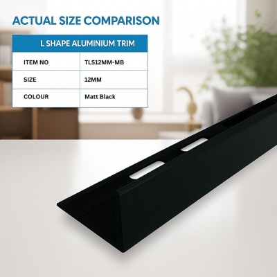 Tilers Choice L SHAPE 12MM Matt Black Aluminium TrimProduct Code: TLS12MM-MB